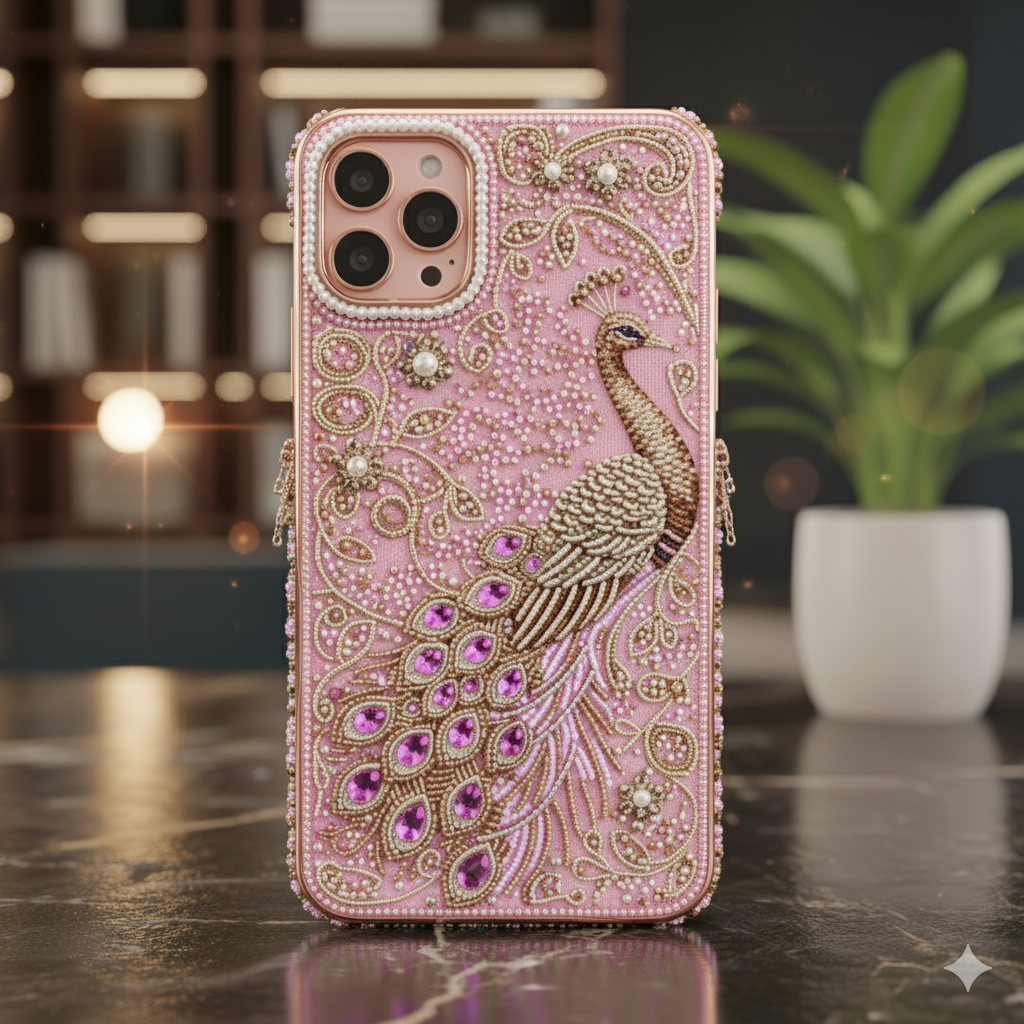 Mobile cover in pink color with beads