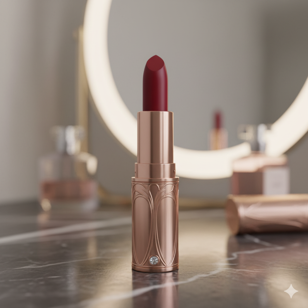 lipstick β a red shade in a metallic, rose-gold style case